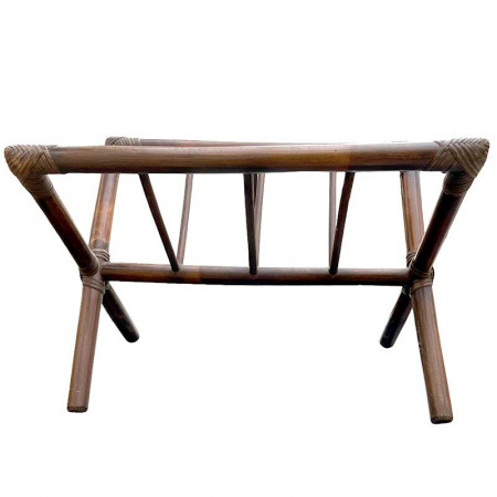 Porte revues, porte journaux en rotin brun vintage des années 80'