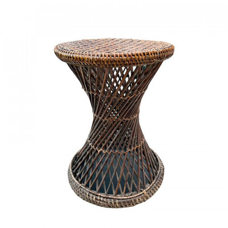 Tabouret de style Tam-Tam en assise rotin et cannage et structure osier années 60-70'.